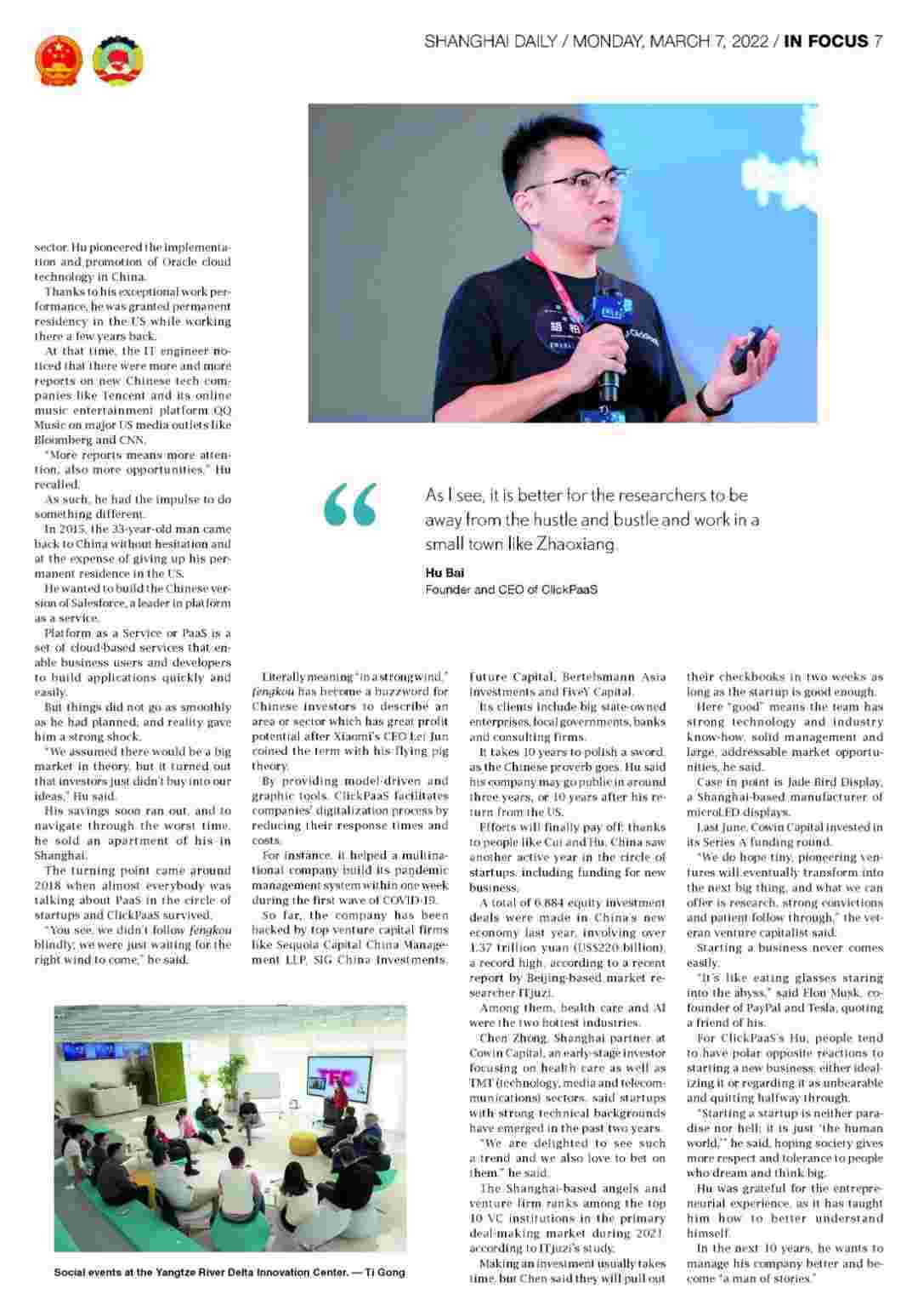 近日,,,,钱能钱包创始人、、CEO胡柏接受了《上海日报》采访,,关于自己当初为何选择创立钱能钱包,,又为何将公司落户于上海青浦,,,分享了其背后的故事。。。
